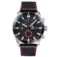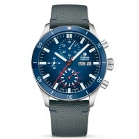 Funktionen: Datumsanzeige. Stunde, Minute, Kleine Sekunde, Chronograph 60 Sekunden-, 30 Minuten- und 12 Stundenzähler, Wochentag.