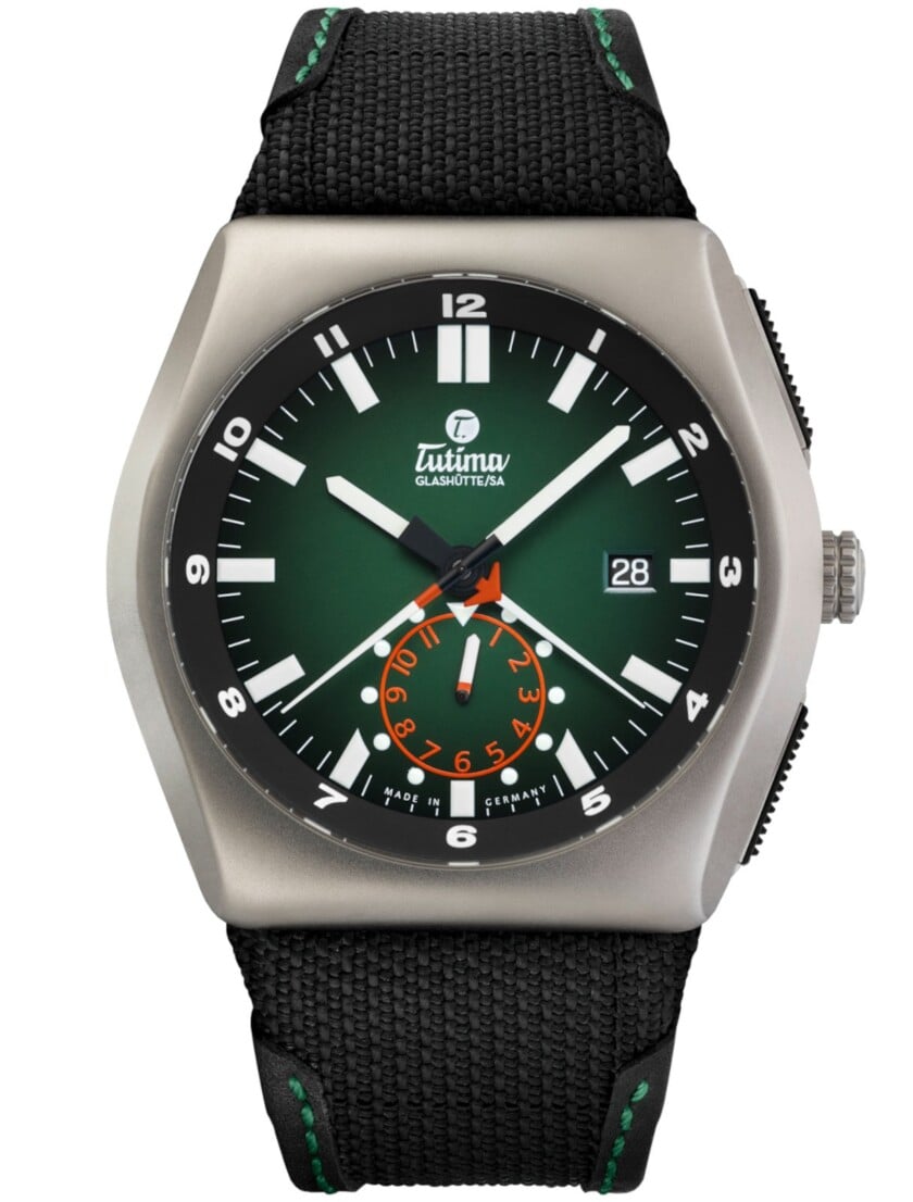 Gehäuse Details: Wasserdicht 30 atm. Integrierte Großflächendrücker mit griffiger Oberfläche. Saphirglas, entspiegelt. Verschraubte Krone. Verschraubter Boden.