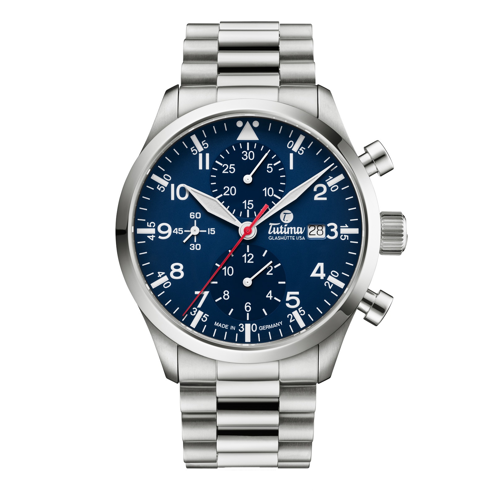 Funktionen: Datumsanzeige. Stunde, Minute, Kleine Sekunde, Chronograph 60 Sekunden-, 30 Minuten- und 12 Stundenzähler.
