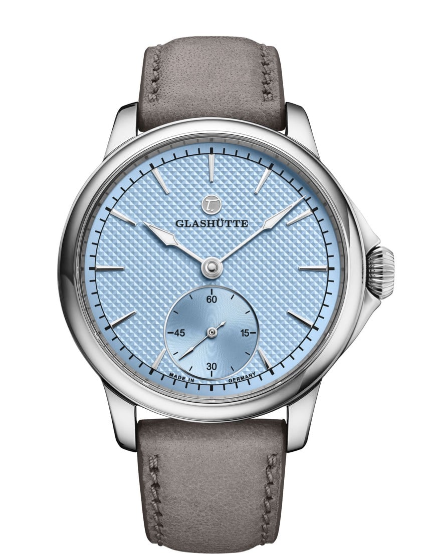 Werk Details: Handaufzug-Werk. Durchmesser 31 mm, Höhe 4,78 mm, 20 Steine, davon drei in verschraubten Goldchatons. Schraubenunruh mit Gewichts- und vier Regulierschrauben in geschlitzten Gewindelöchern. Rückerloses Schwingsystem mit Breguet-Spirale, durchbrochener Unruhkloben, Glashütter Dreiviertelplatine; 21.600 A/h. Gangreserve nach Vollaufzug 65 Stunden.