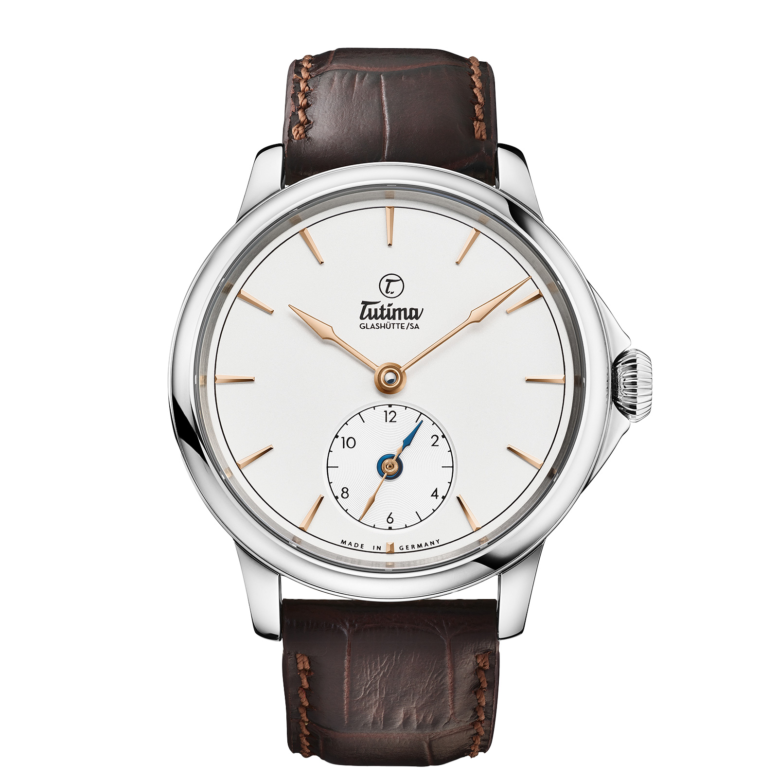 Werk Details: Handaufzug-Werk. Durchmesser 31 mm, Höhe 4,78 mm, 20 Steine, davon drei in verschraubten Goldchatons. Schraubenunruh mit Gewichts- und vier Regulierschrauben in geschlitzten Gewindelöchern. Rückerloses Schwingsystem mit Breguet-Spirale, durchbrochener Unruhkloben, Glashütter Dreiviertelplatine; 21.600 A/h. Gangreserve nach Vollaufzug 65 Stunden.