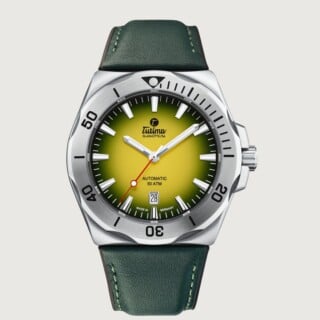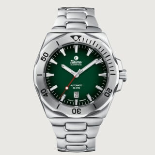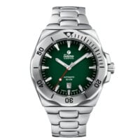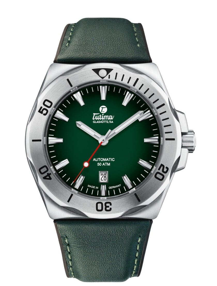 Gehäuse Details: Druckgeprüft 50 bar. Einseitig drehbare Lünette mit Skalierung und Leucht-Merkpunkt SuperLumiNova. Saphirglas, entspiegelt. Verschraubte Krone. Verschraubter Boden.