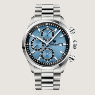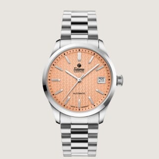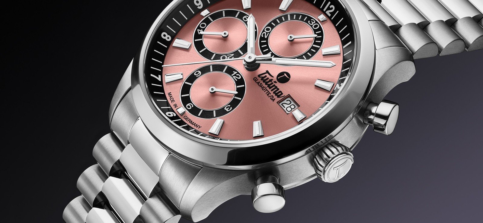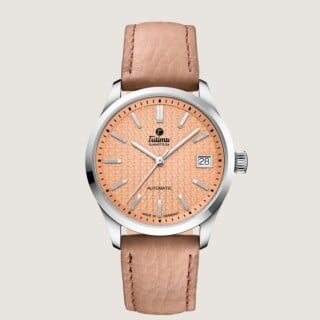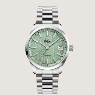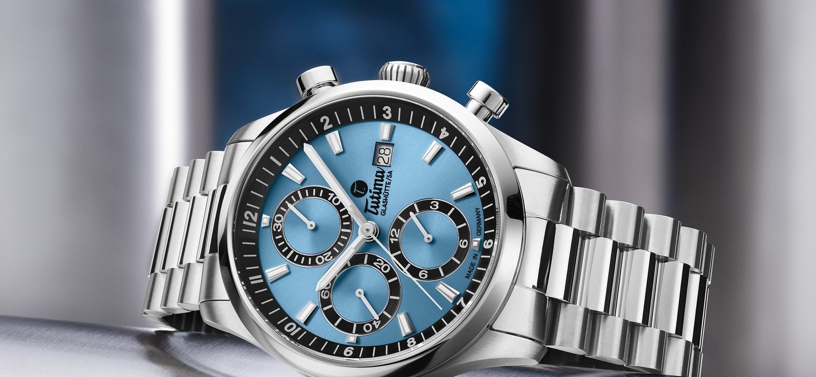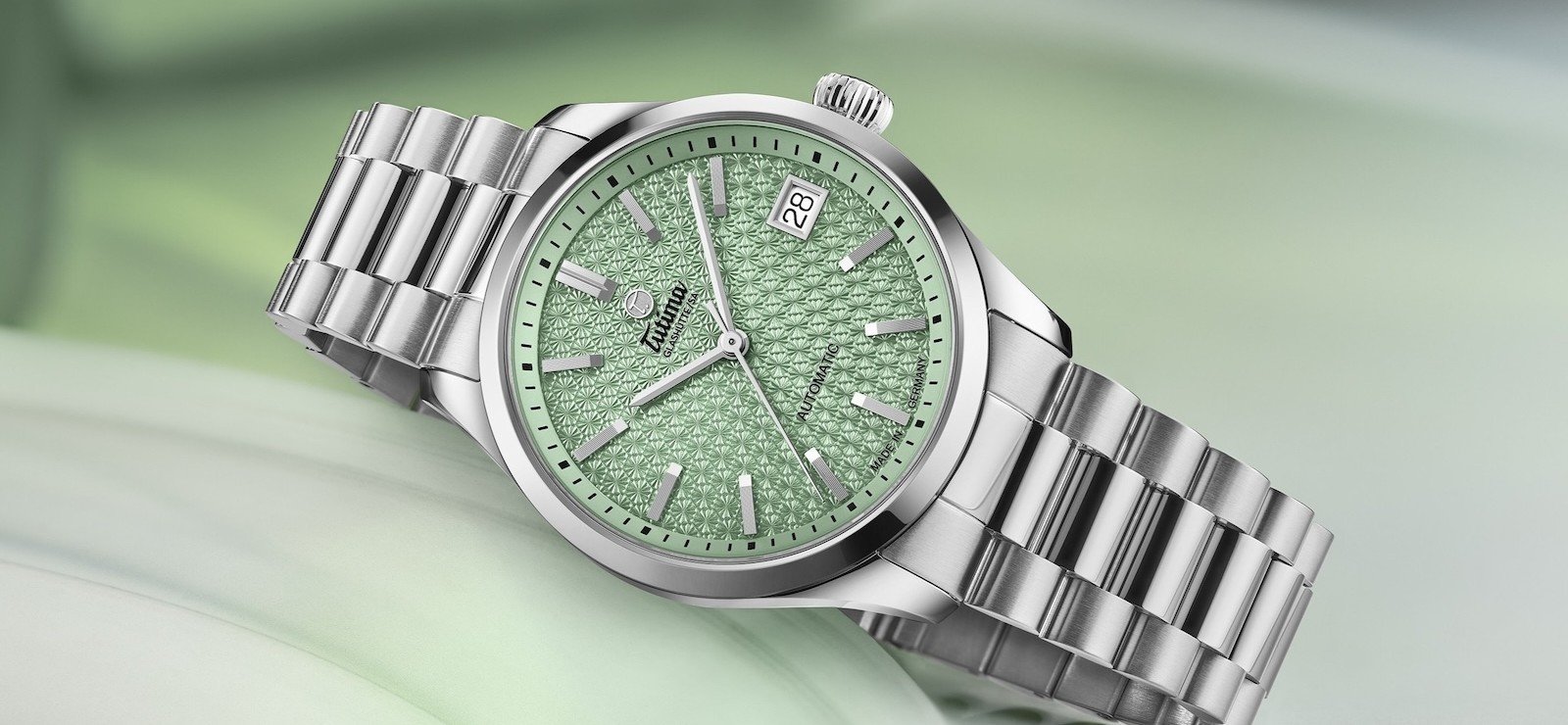 Im Kontrast zur auffälligen Farbgebung der Zifferblätter zeigt sich das Design ansonsten puristisch reduziert – zugunsten der Funktionalität, für die Tutima seit jeher steht. Das Herrenmodell mit 41mm-Gehäuse und verschraubter Krone hält einem Wasserdruck von 10 atm stand, während das Damenmodell mit 34mm-Gehäuse bis zu 5 atm wasserdicht ist.