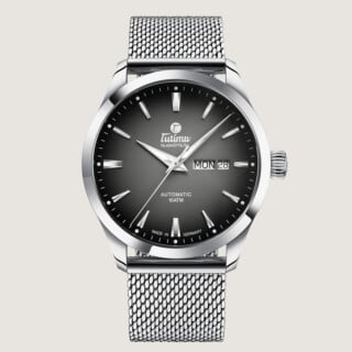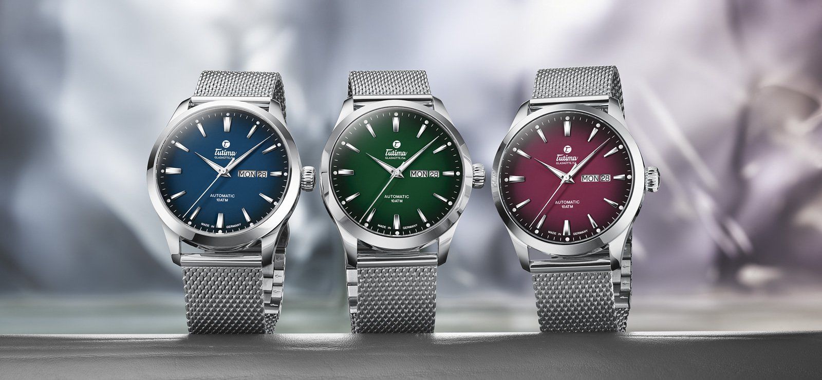 Mit Zifferblättern in Blau, Grün oder Rot wird die Sky Kollektion zum außergewöhnlichen Blickfang, verstärkt durch den dunklen Dégradé-Verlauf, das polierte Edelstahlgehäuse und die feinen Milanaise-Bänder. Diese Modelle bieten einen erschwinglichen Einstieg in die Welt von Tutima.