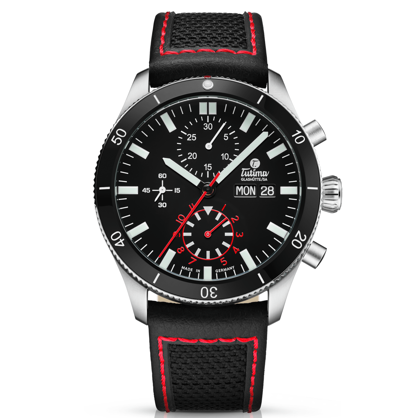 Dettagli del movimento: Movimento cronografo automatico. Rotor rhodanized with gold seal. 25 pietre. Viti lucidate. Riserva di carica dopo carica completa 48 ore.