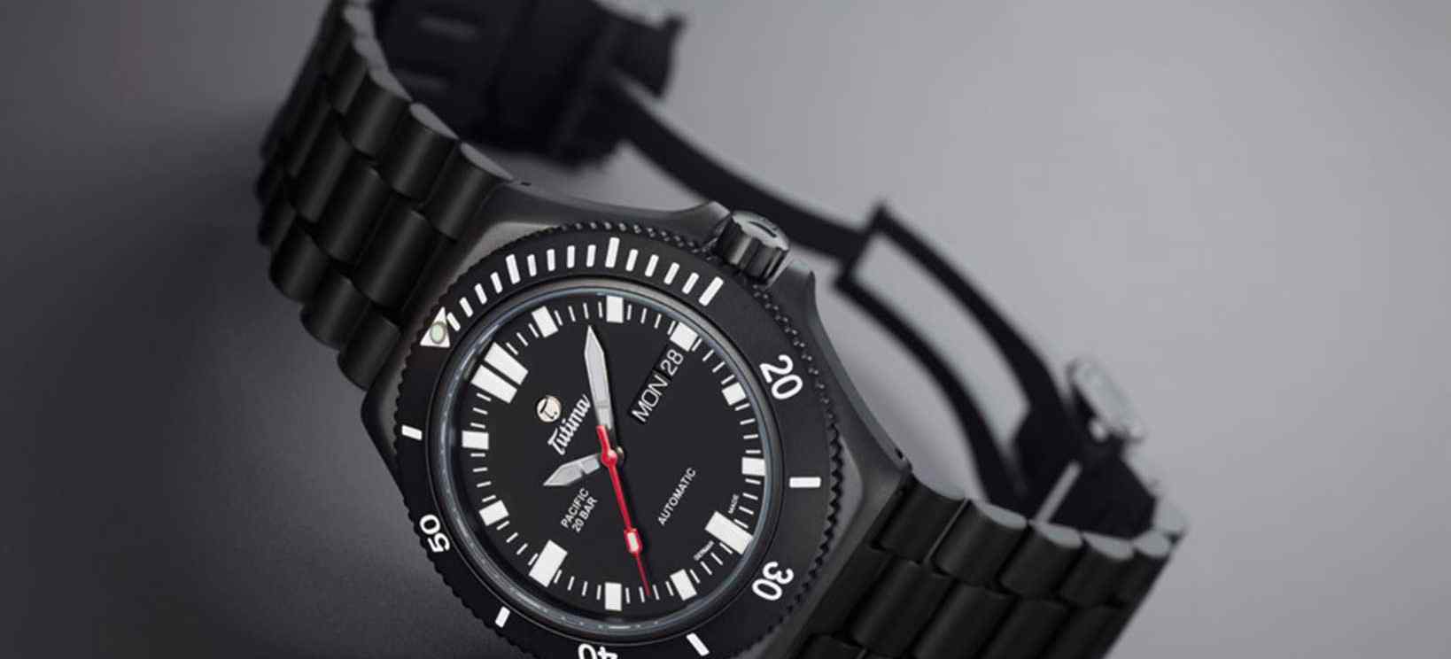 a stainless steel case which is water resistant to 20 bar, scratch-resistant sapphire crystal, rotating bezel with 60-minute diving scale and timeless black finish define the striking, sporty look of the Pacific.