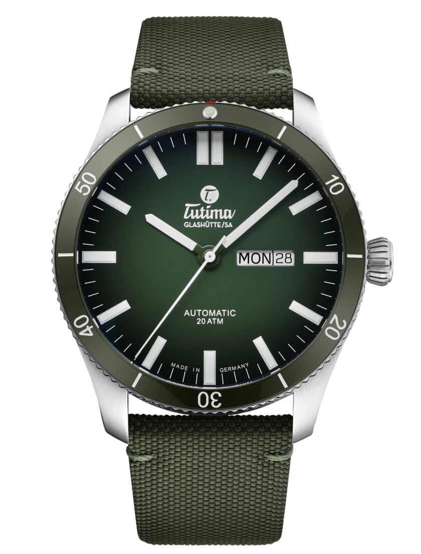 Case Details: Water-resistant 20 atm. Rotating, fluted bezel with luminous marking. Domed sapphire crystal anti-reflective. Screw-in crown. See-through back with sapphire crystal.