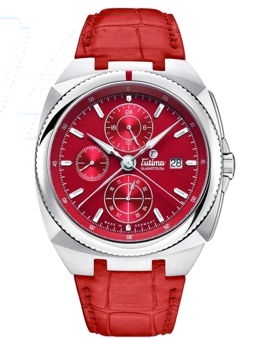 | The new Saxon One Racing Red: the spectacular highlight of the Tutima Glashütte collection shines with a red dial. | |
