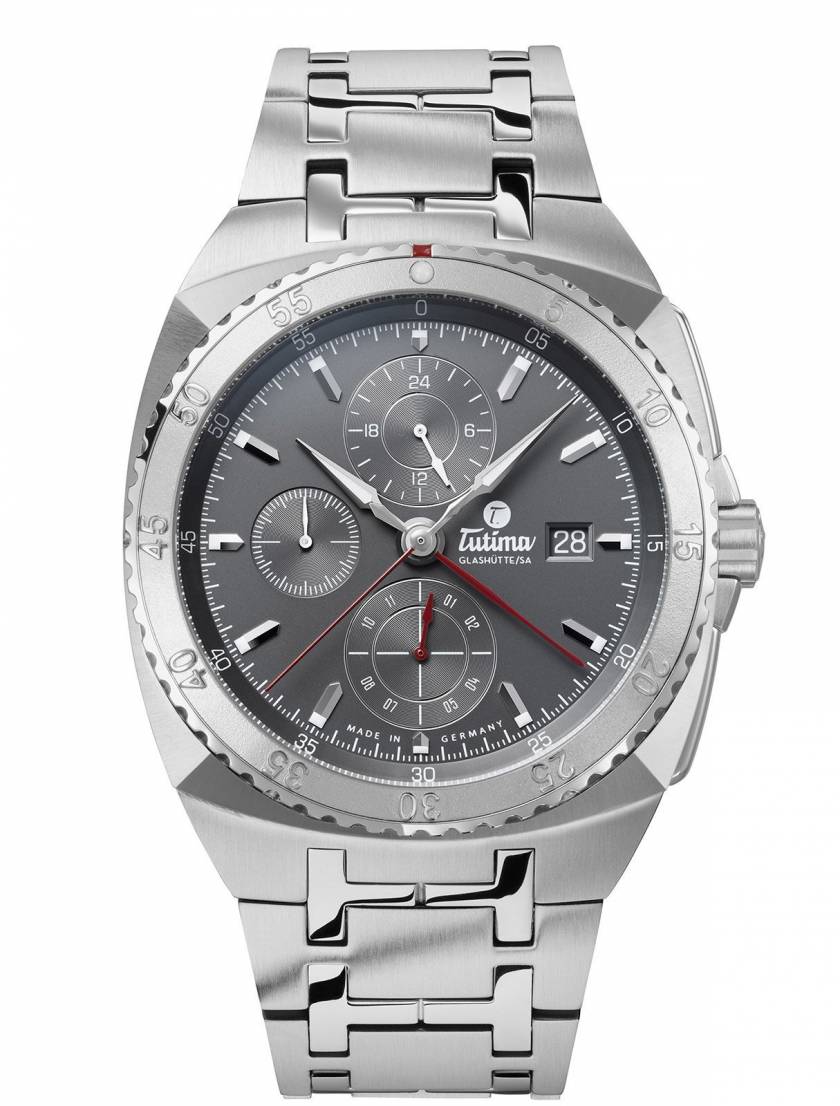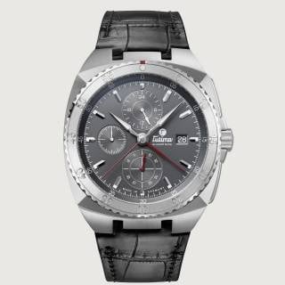 Movement details: Automatic movement chronograph. Rotor antique grey with gold seal. 25 jewels. Polished screws. Power reserve when fully wound 48 hours.