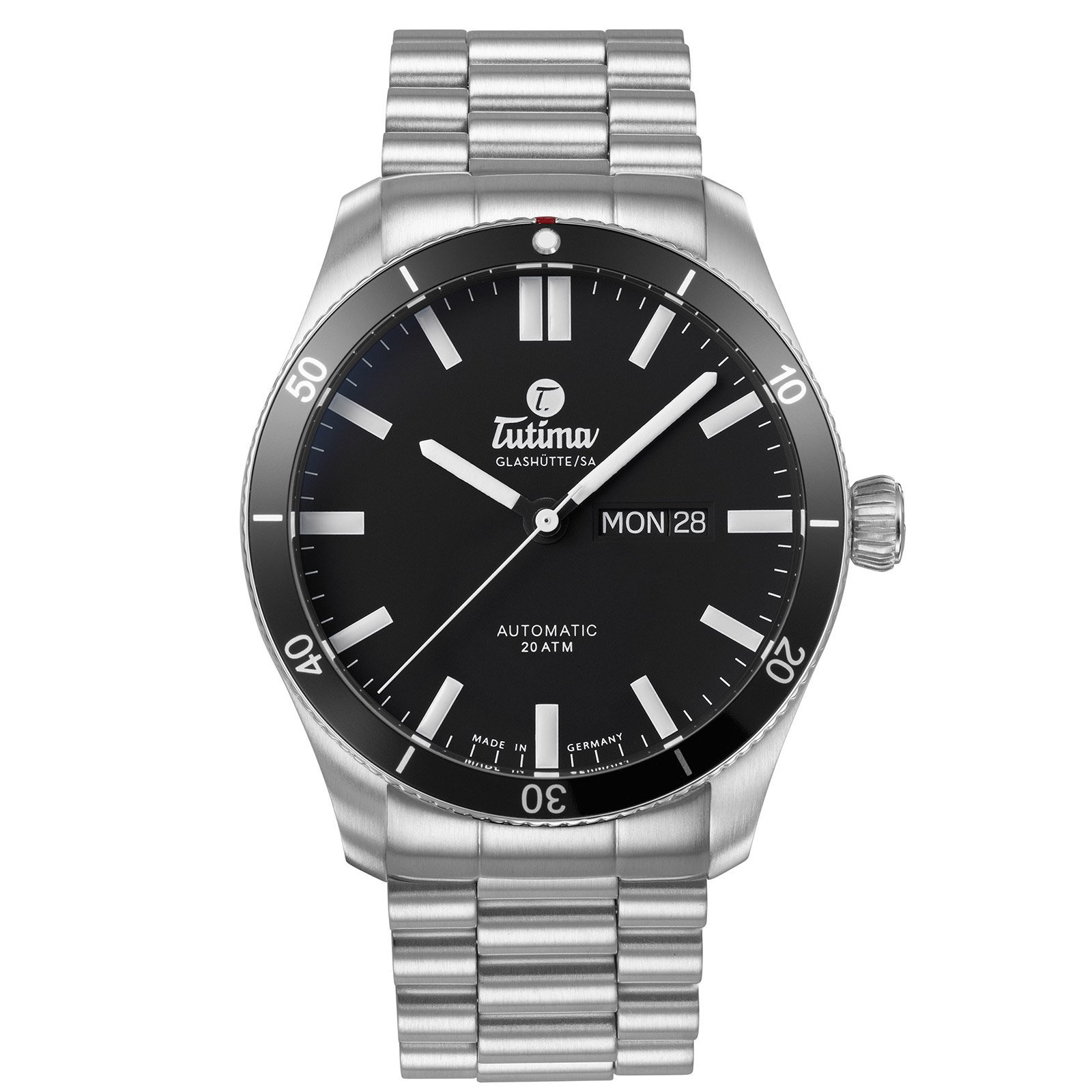 表壳详情: 防水深度 20 ATM。双向旋转表圈,搭配夜光时标。弧形蓝宝石水晶表镜,防眩光处理。旋入式表冠。蓝宝石玻璃透明表壳后盖。