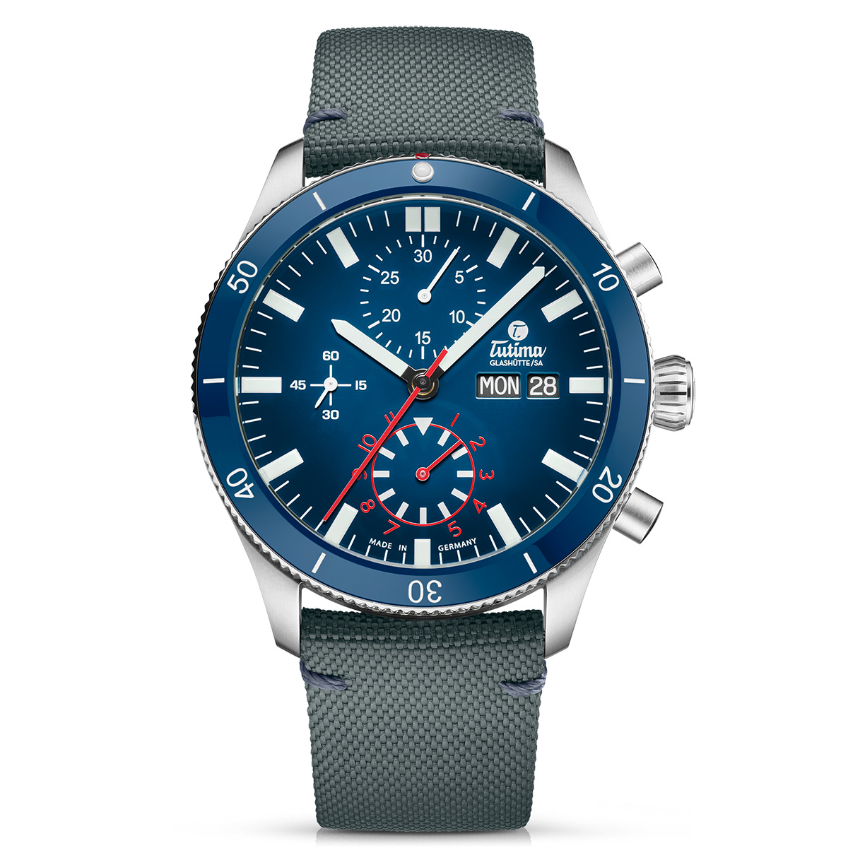 Movement details: Automatic movement chronograph. Rotor antique grey with gold seal. 25 jewels. Polished screws. Power reserve when fully wound 48 hours.