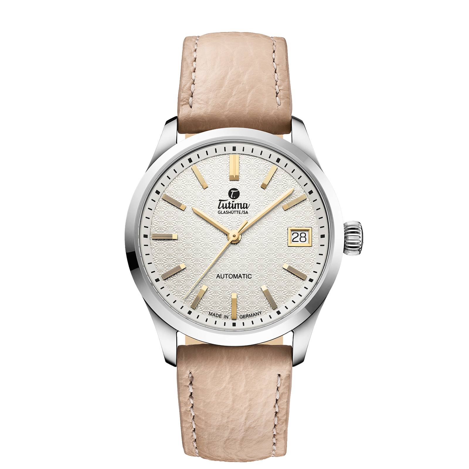| A perfect blend of feminine elegance and modern design, featuring the signature Tutima automatic movement and exquisite hexagonal relief dial. | |