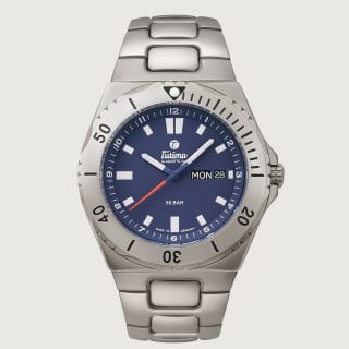 表壳详情: 压力测试达 50 bar。单向旋转槽纹表圈,搭配校准及SuperLumiNova涂层的夜光时标。蓝宝石水晶表镜,防眩光。旋入式表冠。旋入式底壳