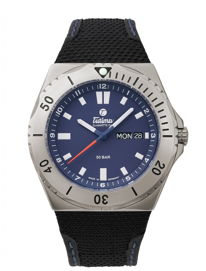 表壳详情: 压力测试达 50 bar。单向旋转槽纹表圈,搭配校准及SuperLumiNova涂层的夜光时标。蓝宝石水晶表镜,防眩光。旋入式表冠。旋入式底壳
